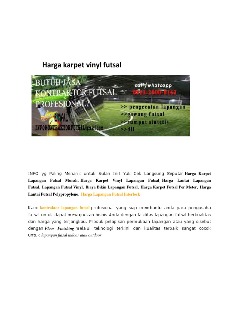 Harga Karpet Vinyl Lapangan Futsal Murah Indoor Mau tau berapa harga karpet futsal per meter, karpet futsal second, harga karpet vinyl lapangan futsal, biaya bikin lapangan futsal, harga rumput sintetis futsal termurah, harga interlock futsal, harga lantai futsal, jual karpet futsal hubungi 0857 1027 2813.